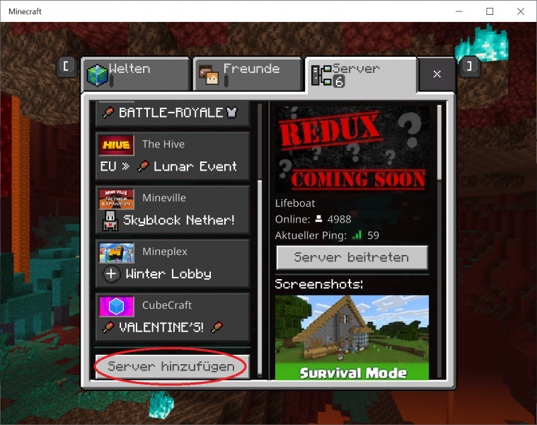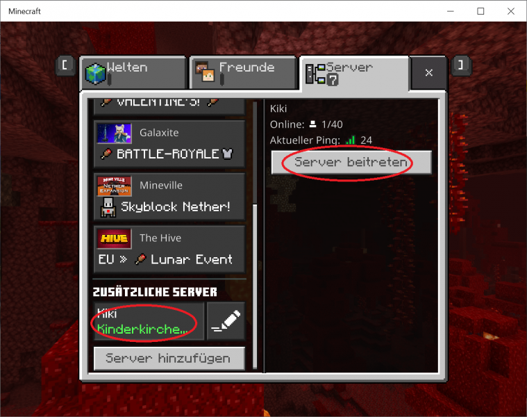 Nun könnt Ihr den Server auswählen und auf Server beitreten klicken.