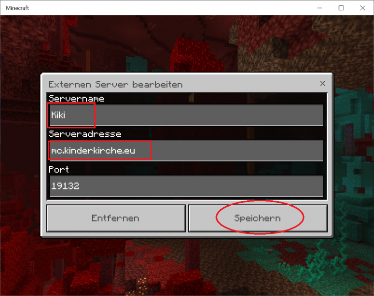 Port: 19132 steht schon da und ihr könnt das einfach so lassen.