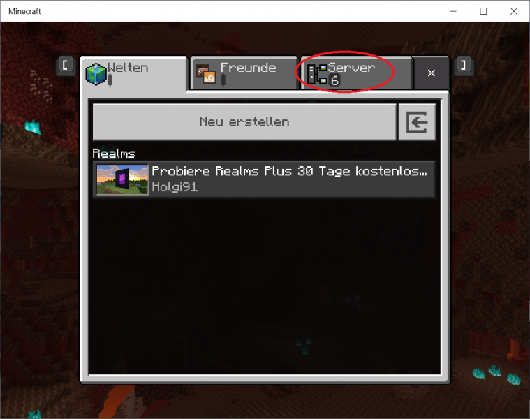 Danach klickt ihr auf Spielen und wählt den Reiter Server aus.
