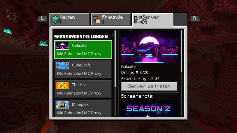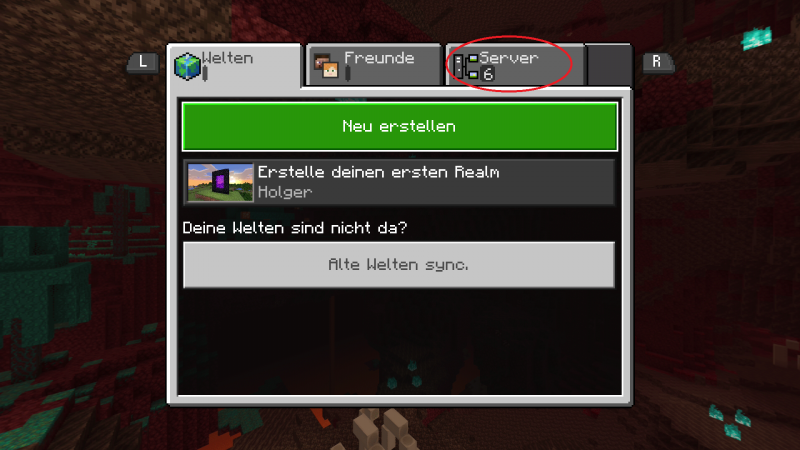 Und wählst Server aus. Wenn unter Server keine Zahl steht, ist Minecraft wahrscheinlich nicht mit dem Internet verbunden. Prüfe, ob du in den Marketplace kommst und ob du dich mit deinem MS-Account eingeloggt hast. Vielleicht musst du aber auch nur kurz warten.